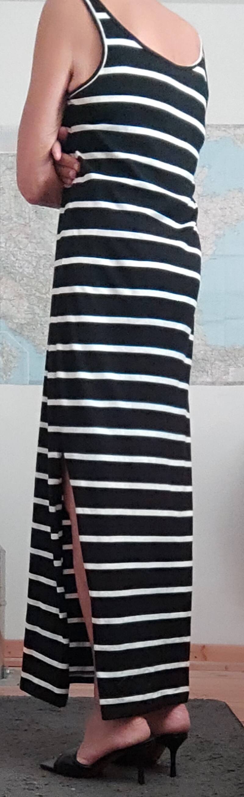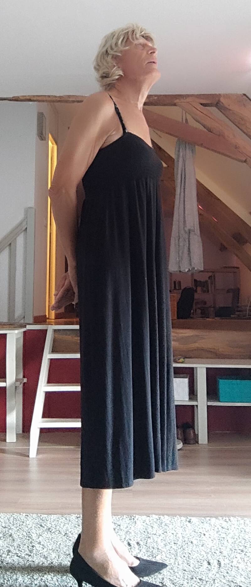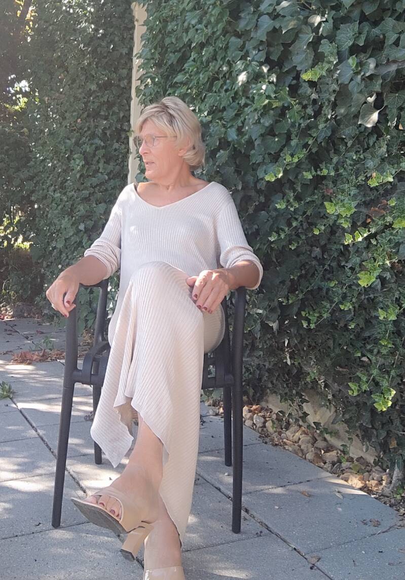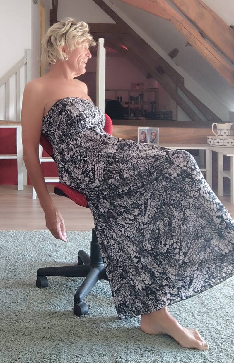 Samen met mijn vrouw zijn we in een dames mode winkel. Mijn vrouw zoekt iets leuks voor haar zelf. Na een tijdje als ze al wat heeft uitgezocht vraagt ze heel lief. Heb jij nog wat voor jezelf gezien? Bij binnenkomst had ik deze mooie lange jurk al gezien. Nou dan gaan we even de juiste maat voor je er uit halen. Die avond zit ik heerlijk in deze nieuwe mooie aanvulling op mijn garderobe.