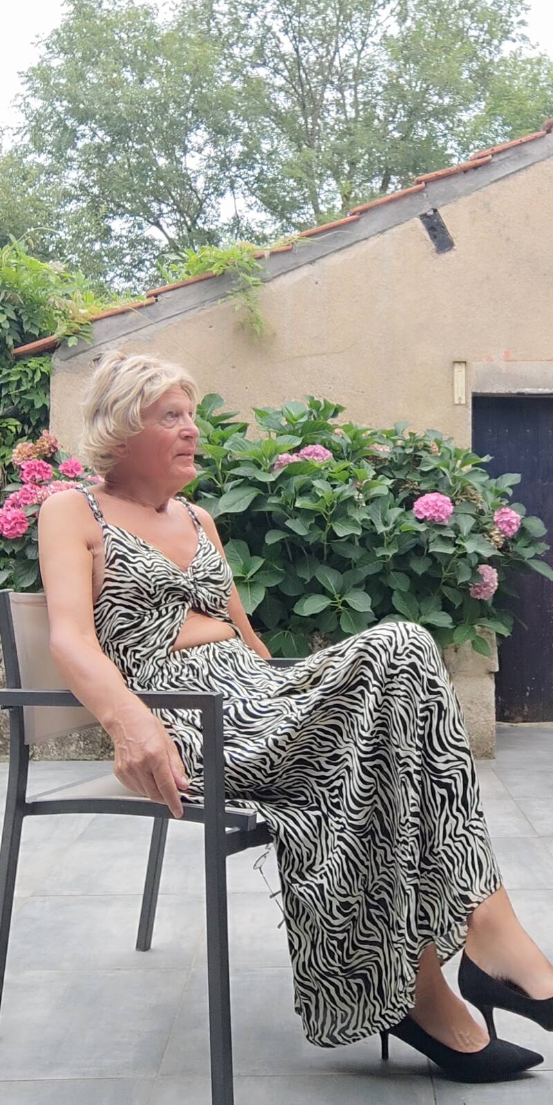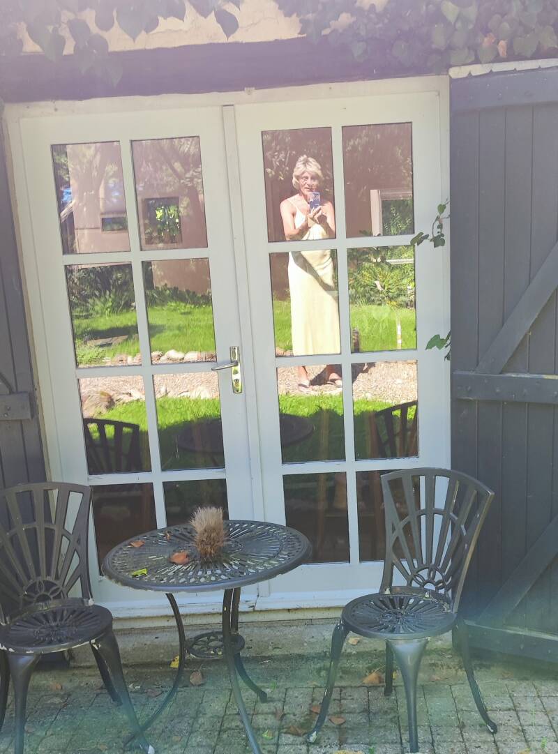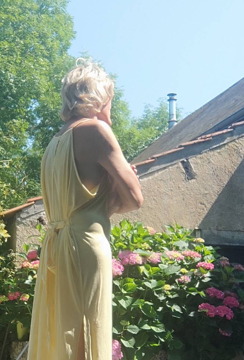 Het was een mooie jurk. Helaas inde kledingbak gedumpt. Samen met zoveel andere mooie kleren . Maar in Frankrijk zou ik stoppen met Maaike zijn. Gelukkig heb ik er nog veel foto,s van.